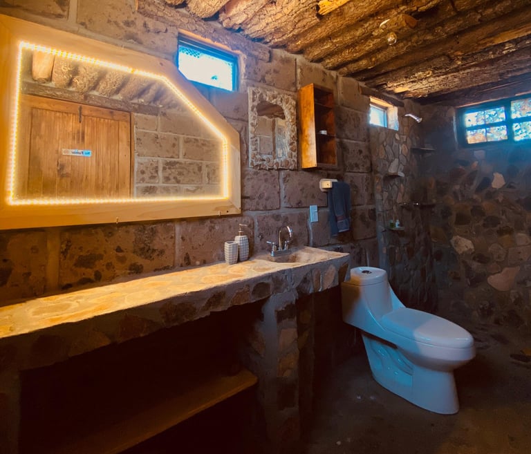 Disfruta de una cabaña acogedora en Amealco, ideal para dos o tres personas. Tiene una cama matrimonial con cama individual extra, calentador, mesa, sillón, wifi y baño de piedra con agua caliente.