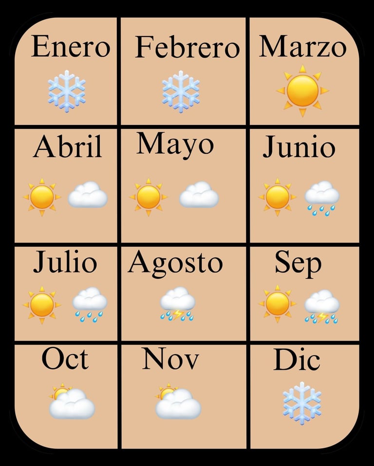 Pues tenemos meses con frío que varia desde 10°c hasta -2°c, meses con calor seco, calor con ráfagas de viento, calor con lluvia ligera, lluvias fuertes y tormentas eléctricas que pueden durar varias horas. Cada mes nos brinda diferentes paisajes para admirar, como septiembre, es cuando todo Amealco se cubre de flores moradas llamadas cosmos o mirasoles.